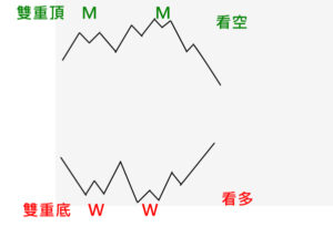 - 雙重底(W+W型):指數打底後被突破兩次以上,可能即將上漲。