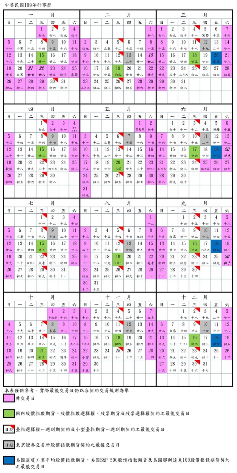 2020年股市行事曆與封關日+民國109年期貨選擇權結算日 | 正確完整版